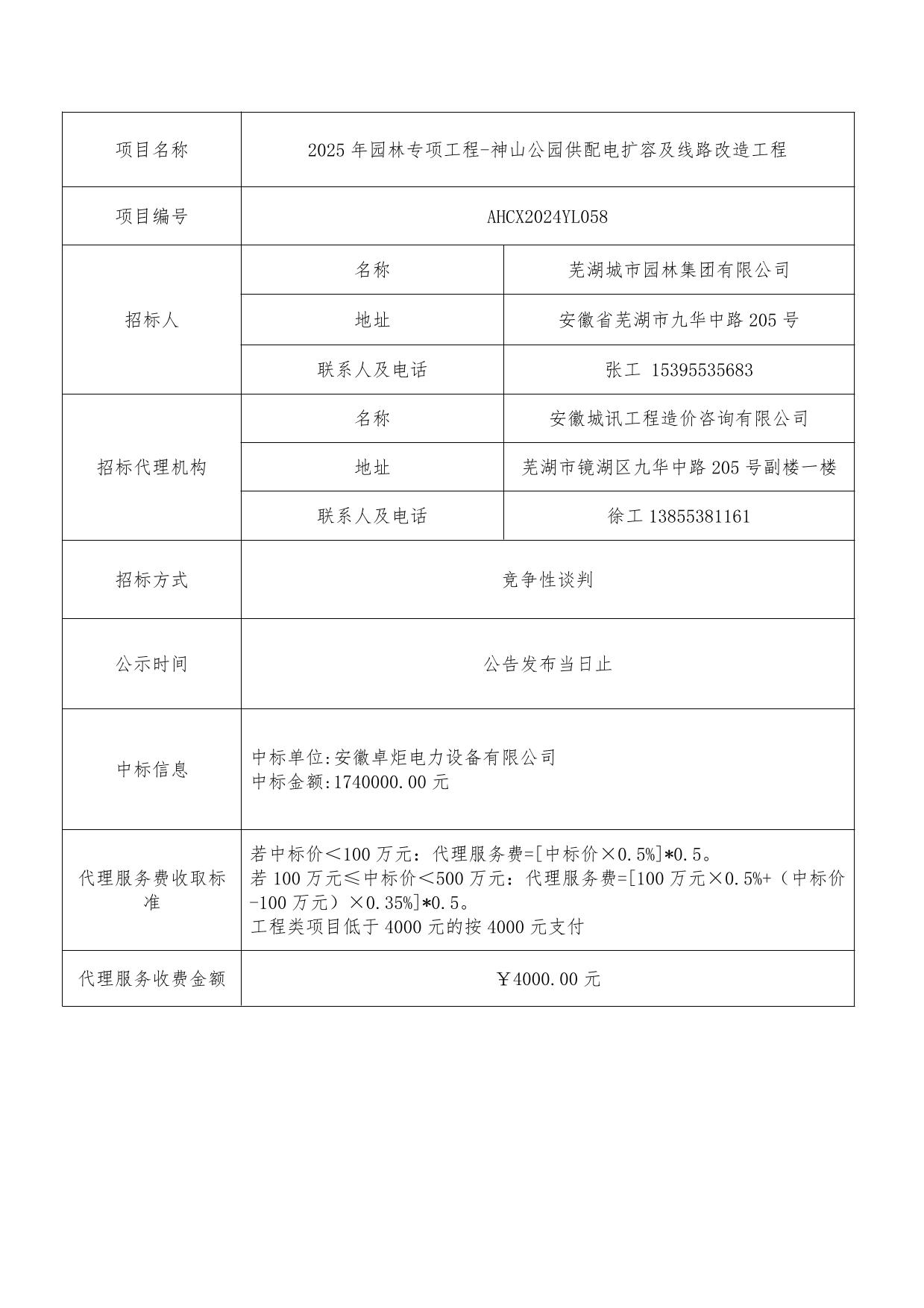 2025年園林專(zhuān)項工程-神山公園供配電擴容及線(xiàn)路改造工程中標結果公告