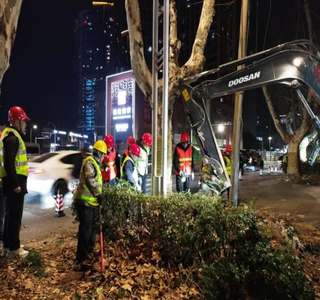 為保障蕪湖市長(cháng)江路(新市口立交-臨江橋)下穿工程穩步推進(jìn),園林集團啟動(dòng)了長(cháng)江路法梧集中移植任務(wù)。從2月14日起,每天夜晚10點(diǎn)至凌晨6點(diǎn),園林集團7個(gè)施工隊連續奮戰9日,順利完成了長(cháng)江路29棵法梧和9棵香樟的移植工作。