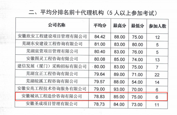 近日,蕪湖市公共資源交易監督管理局舉辦了《蕪湖市招標代理機構從業(yè)人員2025年第一次培訓考核》,依據市公管局統計的數據公布,全市140家招標代理機構共953名從業(yè)人員參加考核,我司取得全市平均分排名前十(市屬?lài)蟮诙┑暮贸煽?jì)。