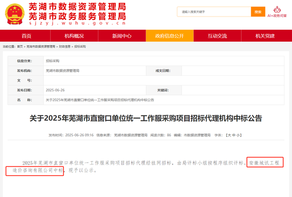 近日,城訊公司憑借卓越的綜合實(shí)力、專(zhuān)業(yè)的團隊以及不懈的努力,連中兩標,分別是無(wú)為市紅廟鎮2024年農村公路提質(zhì)改造工程-縣鄉道升級改造(徐羊路)一審審價(jià)、2025年蕪湖市直窗口單位統一工作服采購項目招標代理。