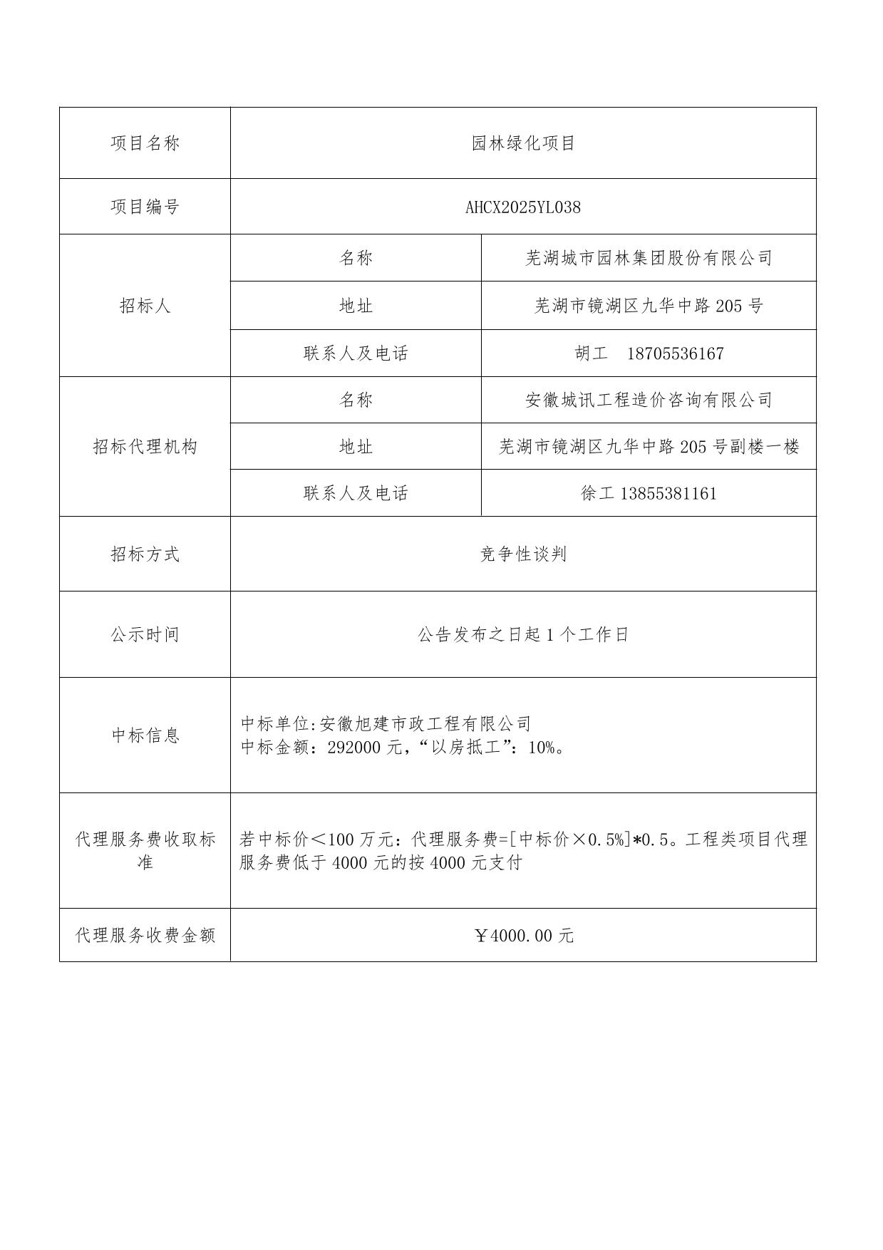 園林綠化項目成交結果公告