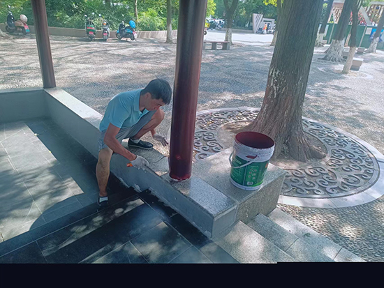 二是對園容綠化樹(shù)木進(jìn)行修剪整形、補植補栽;清掃保潔全園主干道、綠地、池塘水域;對廣場(chǎng)座椅、燈桿、標志牌、健身器材、衛生間內外設施等加大保潔力度;加強基礎設施維護,維修更換廣場(chǎng)座椅、廁所硬件設備等。積極營(yíng)造干凈、整潔、靚麗、優(yōu)美的公園環(huán)境,保證文明創(chuàng )建迎檢期間公園最佳景觀(guān)效果。