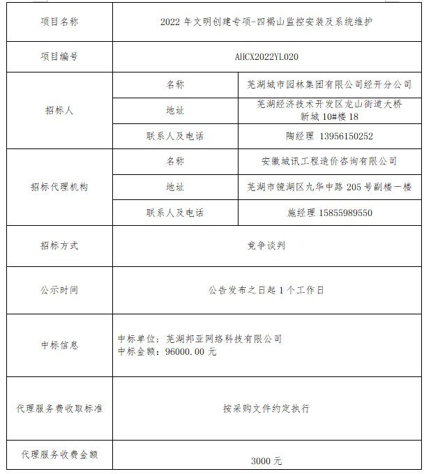 2022年文明創(chuàng )建專(zhuān)項-四褐山監控安裝及系統維護 中標結果公示