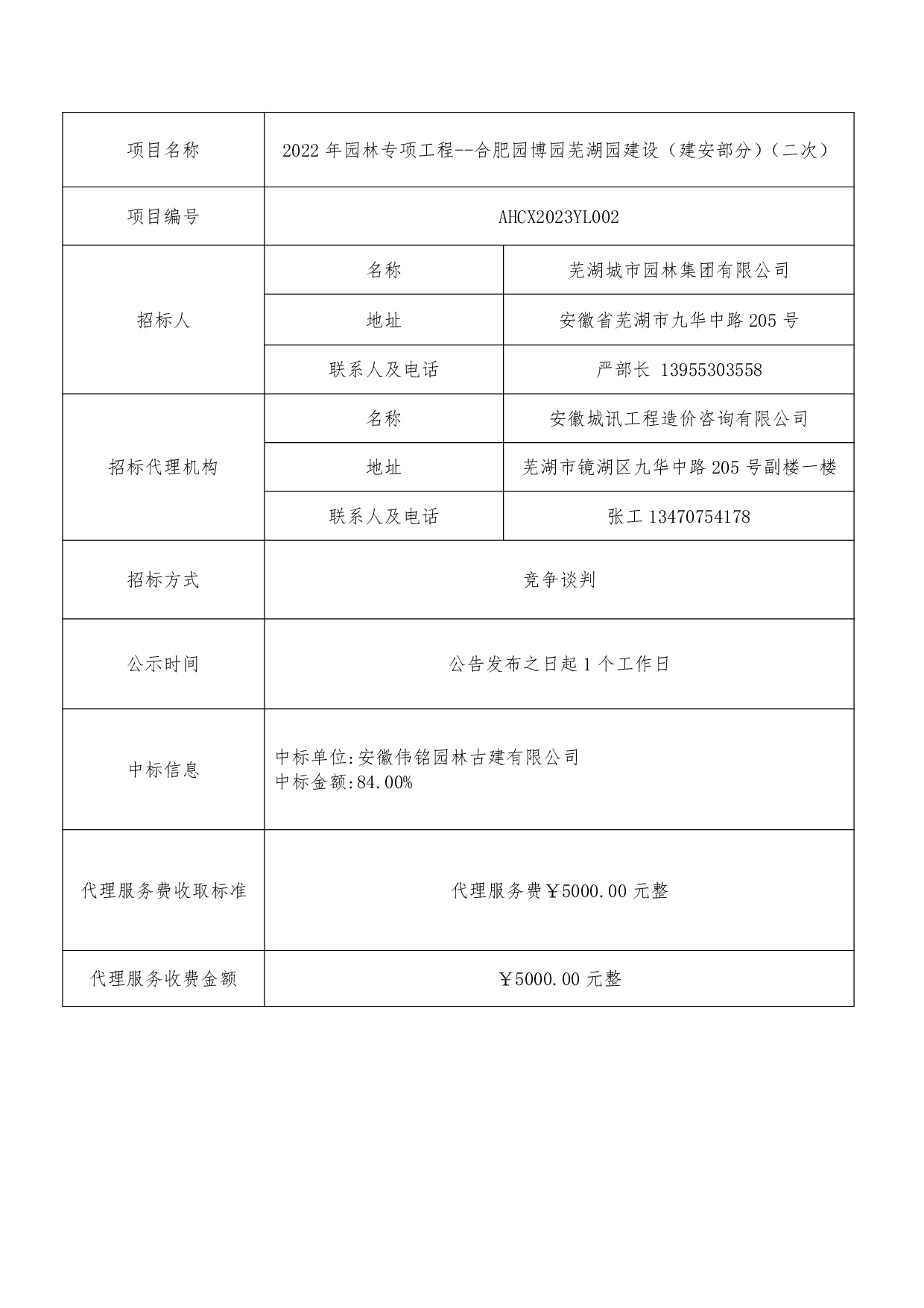 2022年園林專(zhuān)項工程--合肥園博園蕪湖園建設(建安部分)(二次)中標結