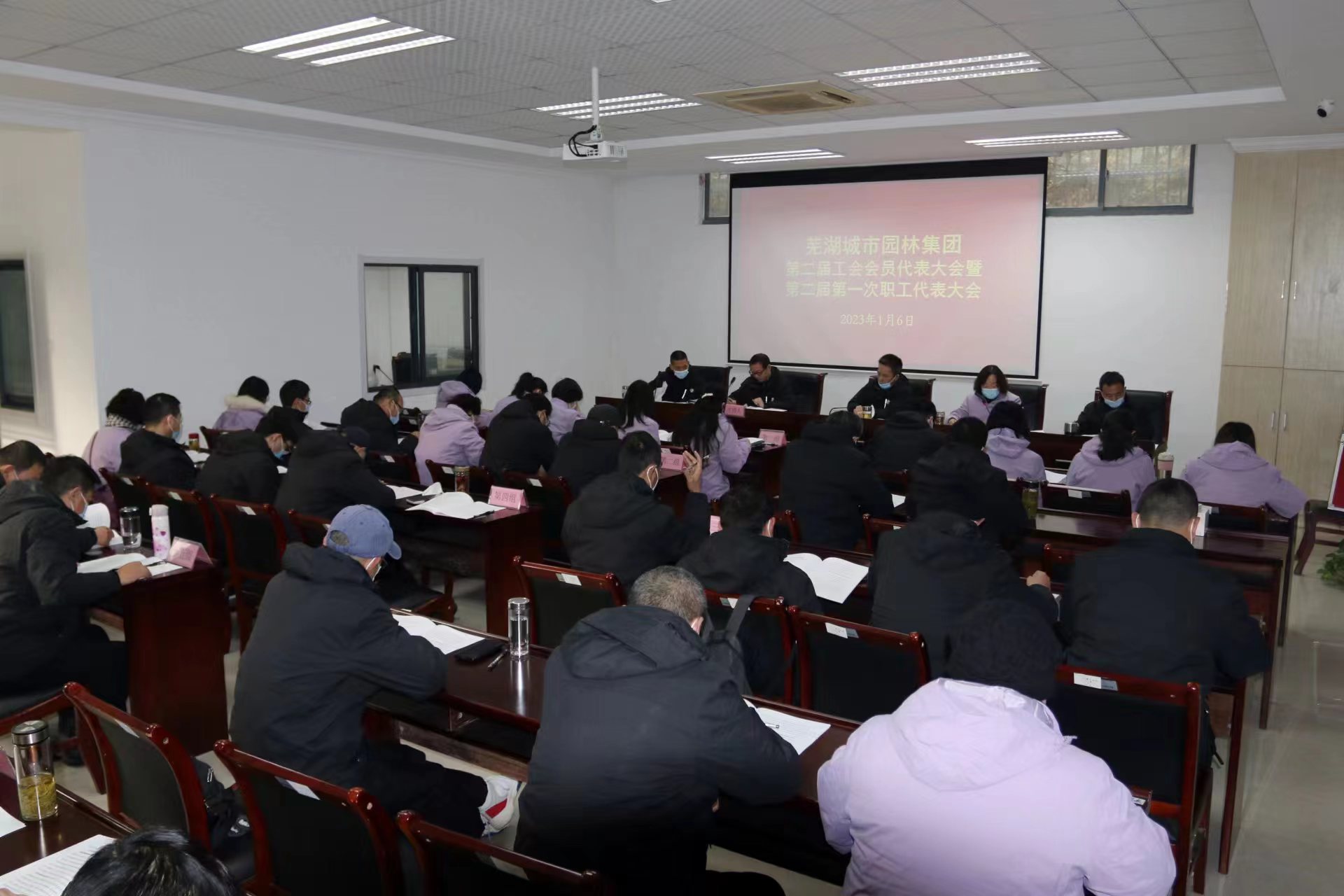 2023年1月6日上午,蕪湖城市園林集團在副樓一樓會(huì )議室舉辦第二屆工會(huì )會(huì )員代表大會(huì )暨第二屆第一次職工代表大會(huì ),40名職工代表出席會(huì )議。