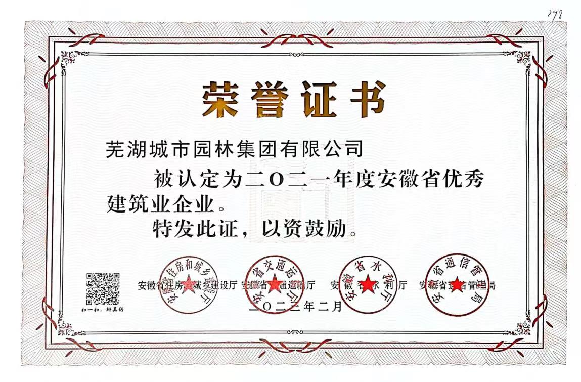 近日,安徽省住房城鄉建設廳公布2021年度安徽省優(yōu)秀建筑業(yè)企業(yè)名單,園林集團憑借自身過(guò)硬綜合實(shí)力光榮上榜,榮獲“2021年度安徽省優(yōu)秀建筑業(yè)企業(yè)”榮譽(yù)稱(chēng)號。