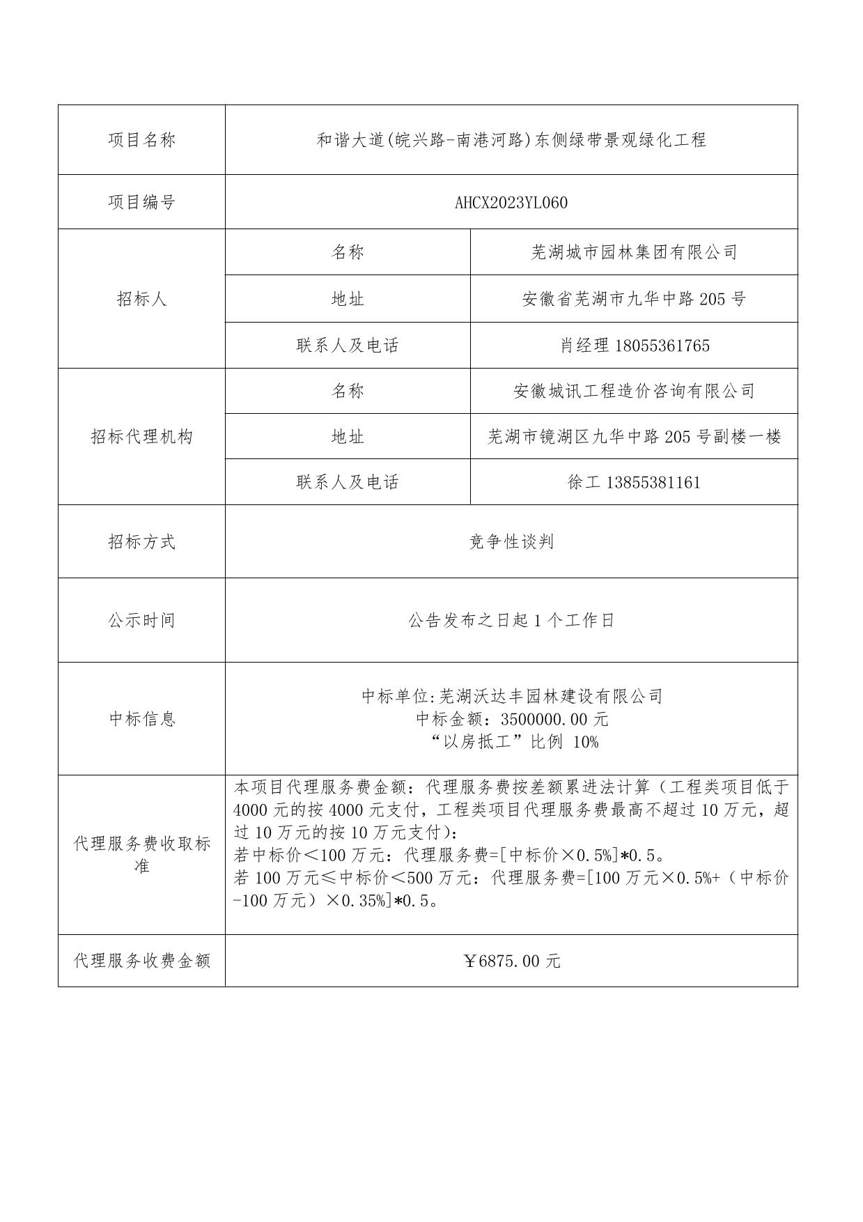 和諧大道(皖興路-南港河路)東側綠帶景觀(guān)綠化工程中標結果公示