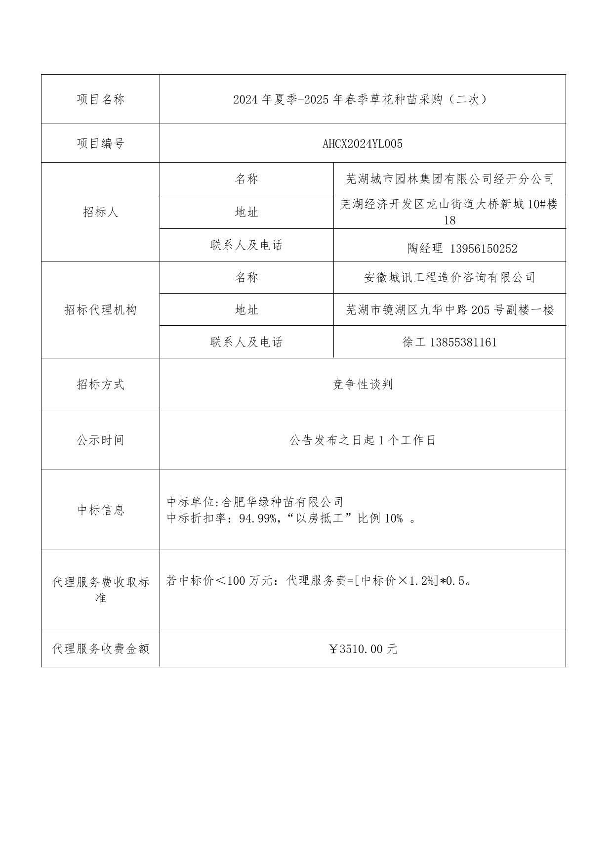 2024年夏季-2025年春季草花種苗采購(二次)成交結果公告