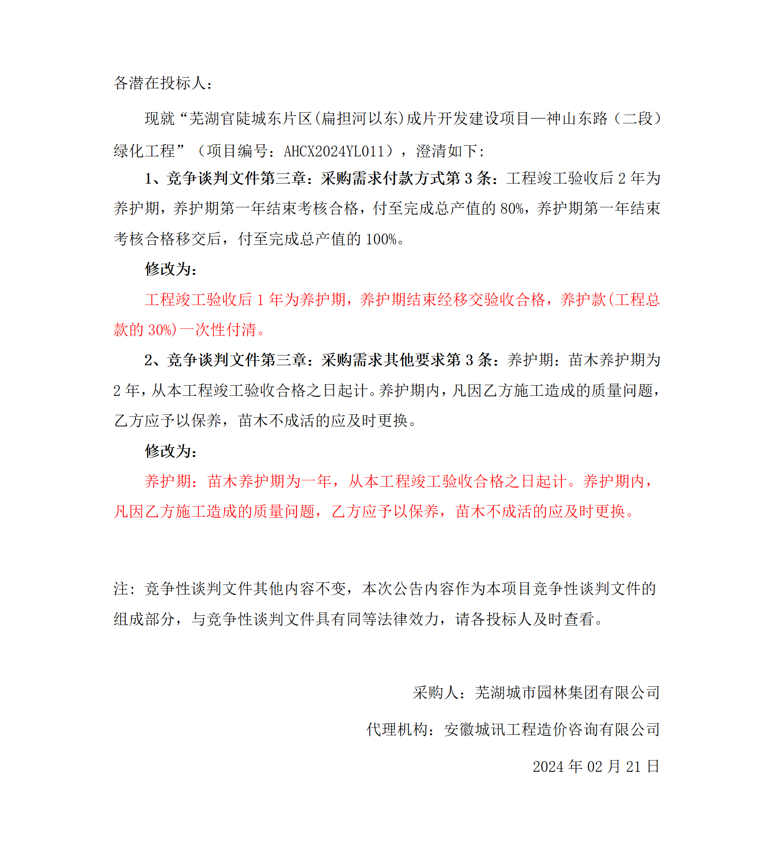 蕪湖官陡城東片區(扁擔河以東)成片開(kāi)發(fā)建設項目—神山東路(二段)綠化工程...